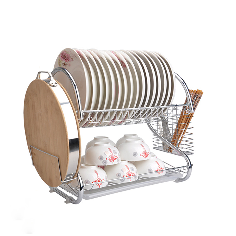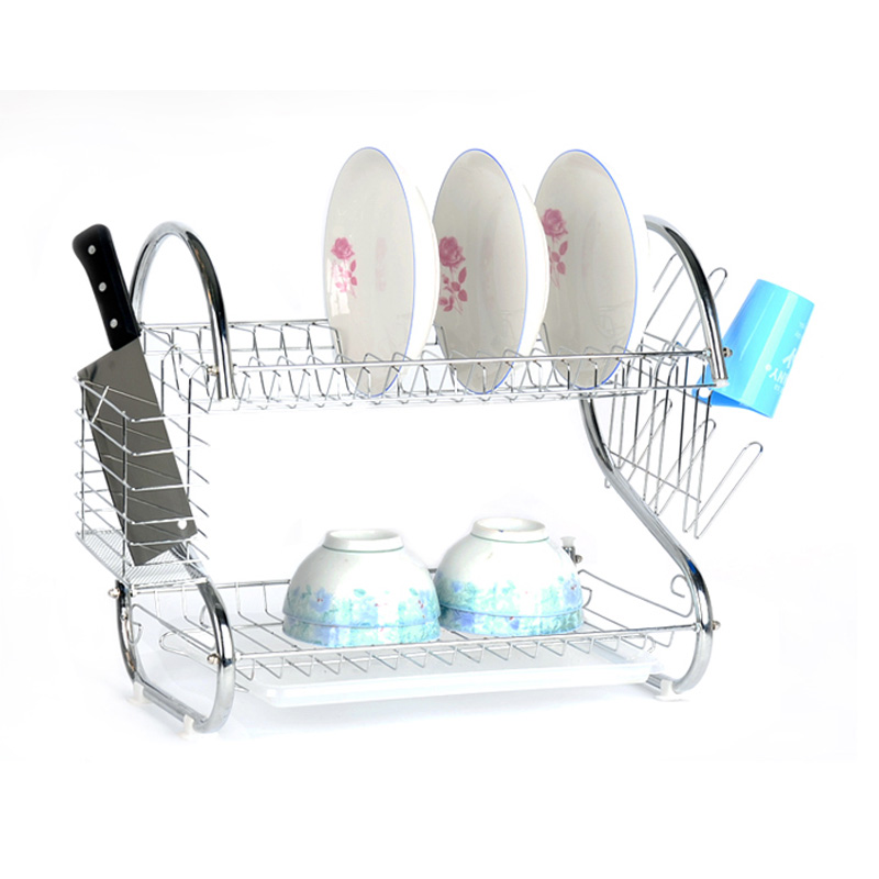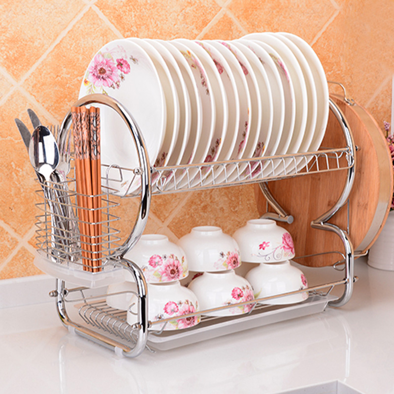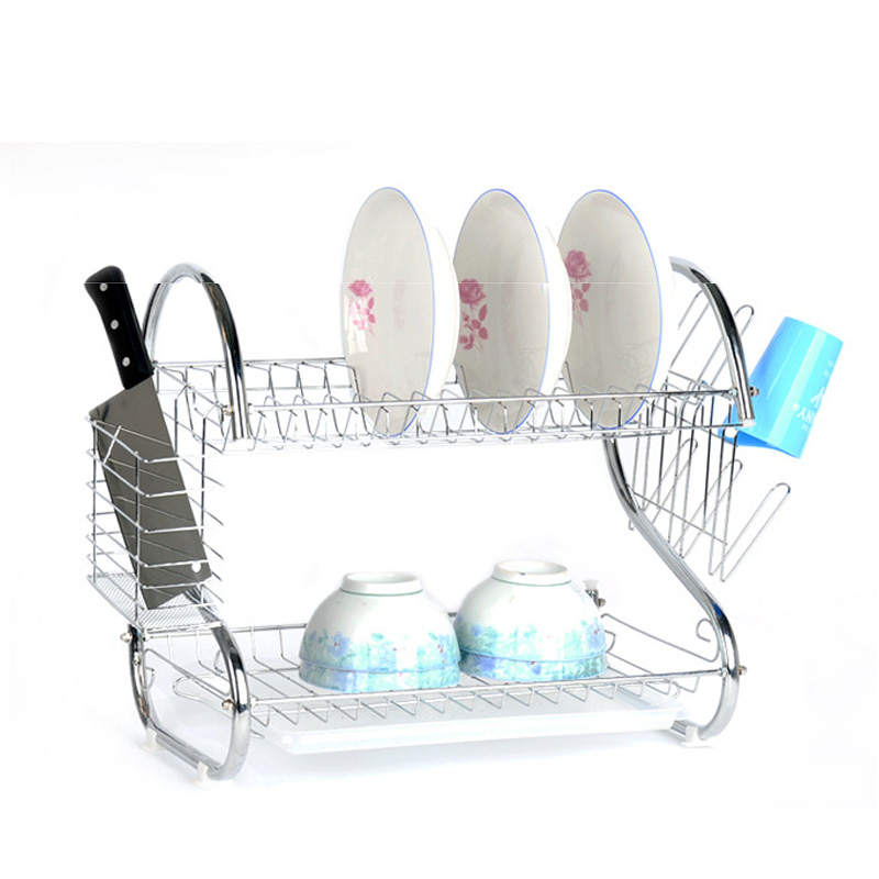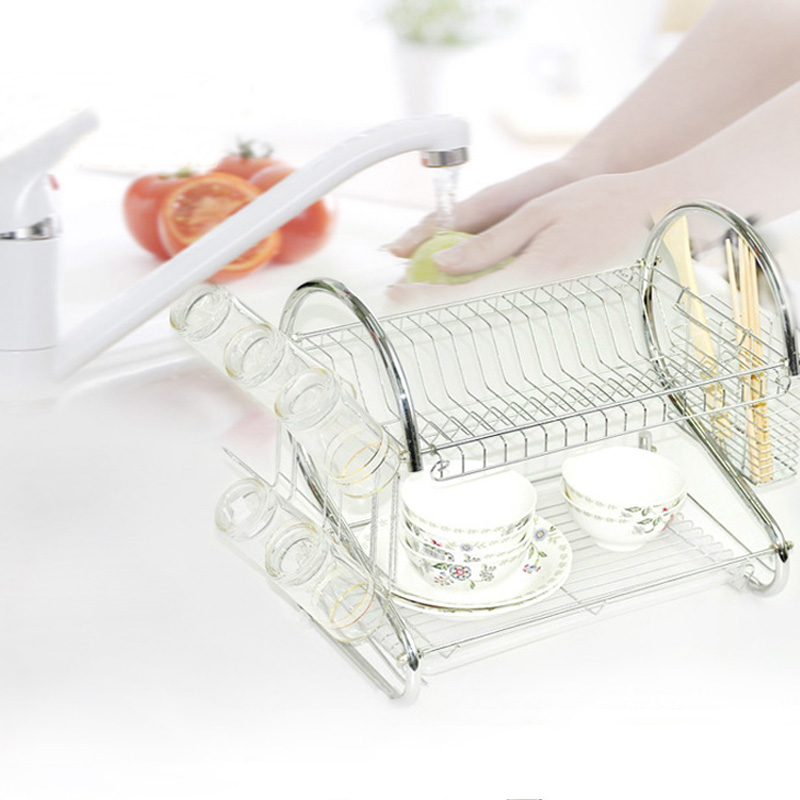 2 Tiers Kitchen Dish Drying Rack with Tray