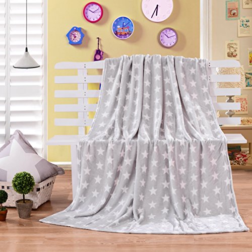 HYSEAS Velvet Plush Throw, Home Fleece Throw Blanket, 50" x 60", Gray Star