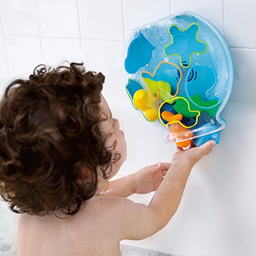 Product Description Sort 6 friendly bathtub squirters into their own color coded cut outs in the fishbowl. Then spin to dump them out for squirt time fun. Fishbowl floats or sticks on wall with suction cups. 0