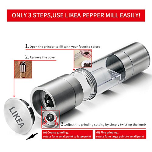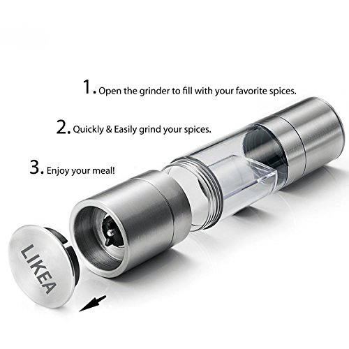 LIKEA Salt and Pepper Mill Grinder 2 in 1 Combo Stainless Steel Mill Grinder with Adjustable Coarseness And Brush for Professional Chef