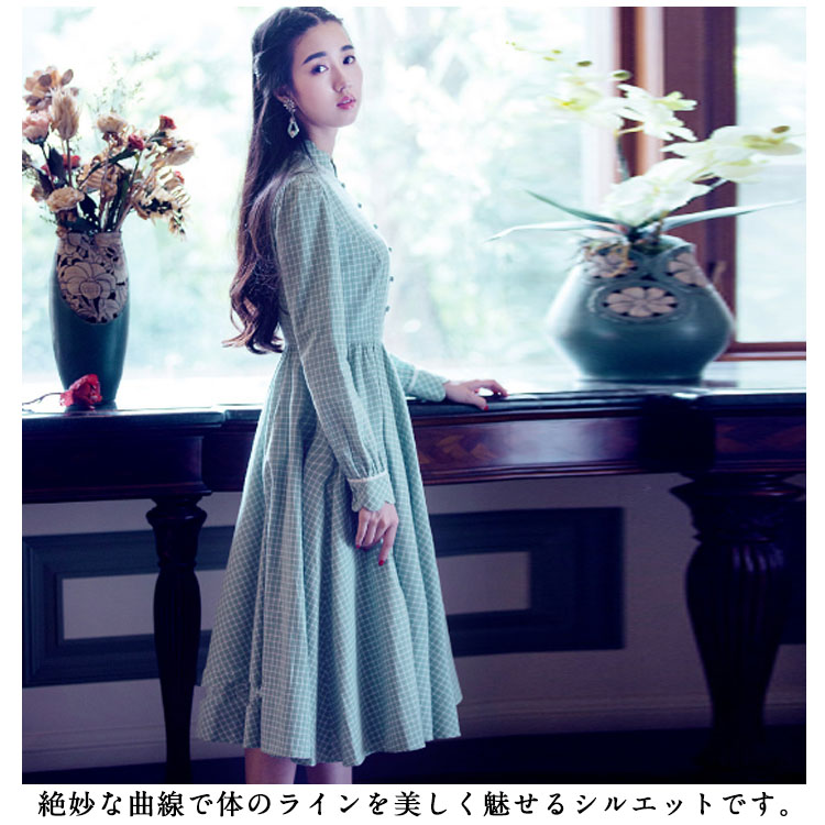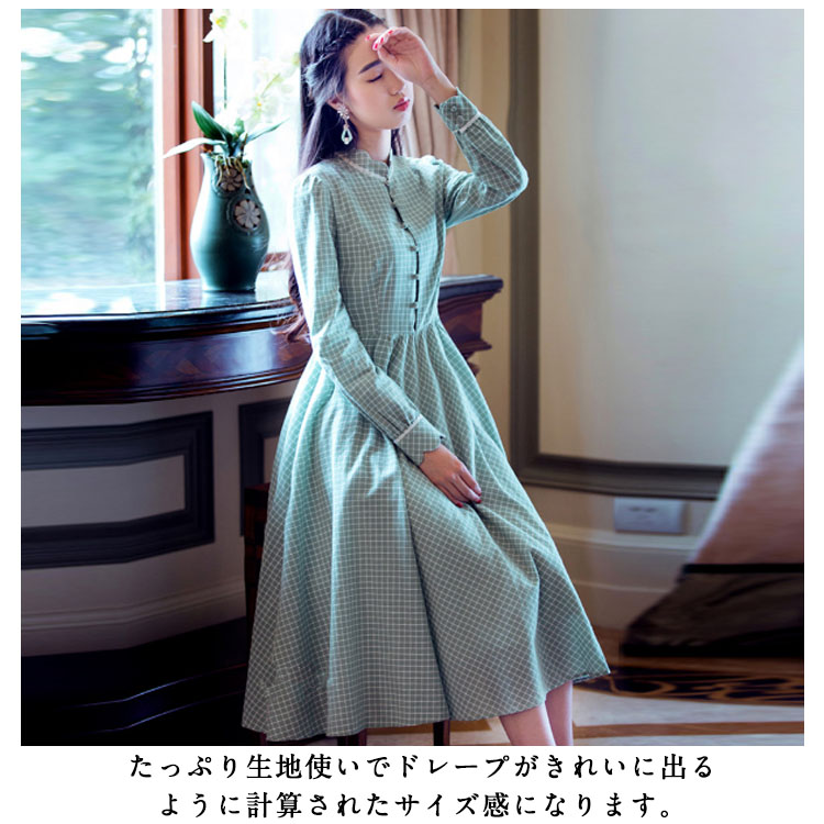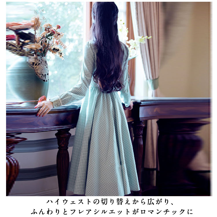 | 大人女子が着たいチェック柄ワンピース。シックで清楚感のあるギンガムチェックを取り入れてます。ハイウェストの切り替えから広がり、ふんわりとフレアシルエットがロマンチックに絶妙な曲線で体のラインを美しく魅せるシルエットです。たっぷり生地使いでドレープがきれいに出るように計算されたサイズ感になります。 | |