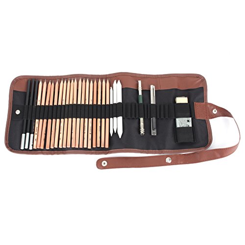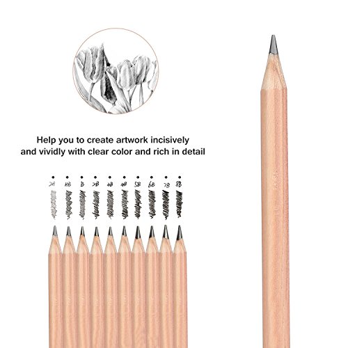 - PERFECT DRAWING SET- This set include basic tools needed for sketching. There are several different hardness of pencils, charcoal pencils, erasers, pencil extender, an exacto knife, paper pen and a portable bag. Suitable for beginners