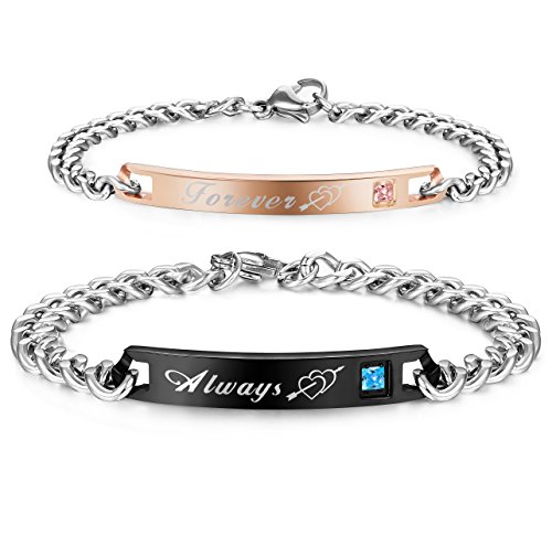 -. Title : LOLIAS 2 Pcs Stainless Steel Couples Bracelets for Men Women His & Her Bracelet Chain