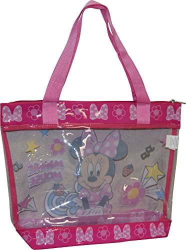 Product Description This Beautiful Minnie Mouse large PVC tote is made with all the details that your little one will definitely love. Features double handle webbing shoulder straps and plenty of room to pack all her needs. Your little one will surely love this product. 0