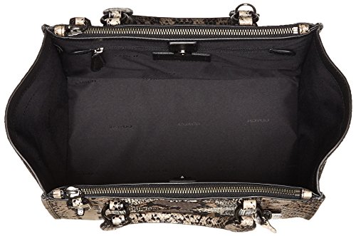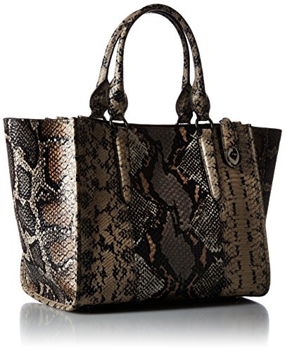 COACH Women's Crosby Carryall DK/Fog Multi Satchel Python embossed leather. Expandable sides. Nickel hardware. Center area opens wide, closes w/ magnetic snap closure.Lined in black,zlip,slip and cell pockets.2 long zip top closures on either side. Dual rolled handles and long adjustable shoulder, xbody strap. Roomy and sophisticatedFeature