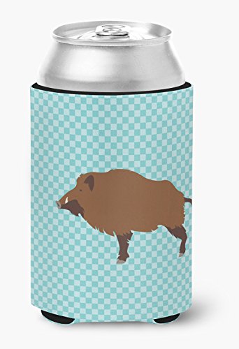 Caroline's Treasures BB8110CC Wild Boar Pig Blue Check Decorative, Can Hugger, Multicolor