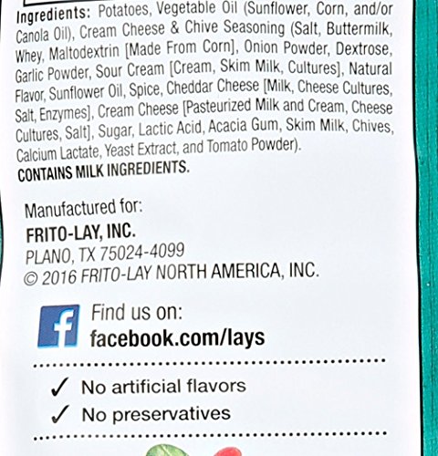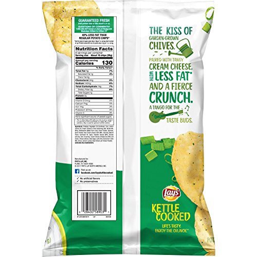 Lay's Kettle Cooked 40% Less Fat Cream Cheese & Chive Flavored Potato Chips, 8 Ounce