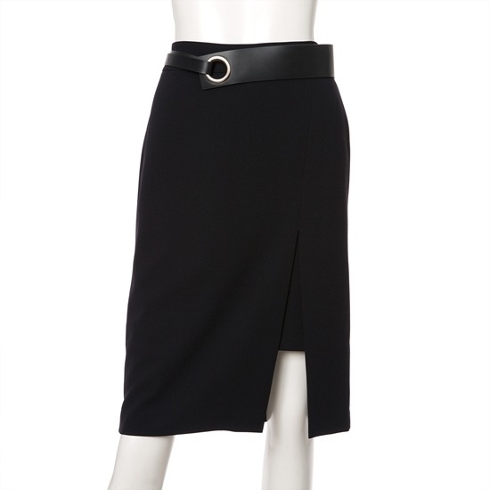 KL, 슬림하게 떨어지는 핏감과 앞트임이 멋진 가죽벨트 옵션 H라인 스커트입니다