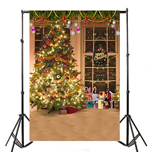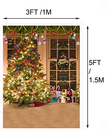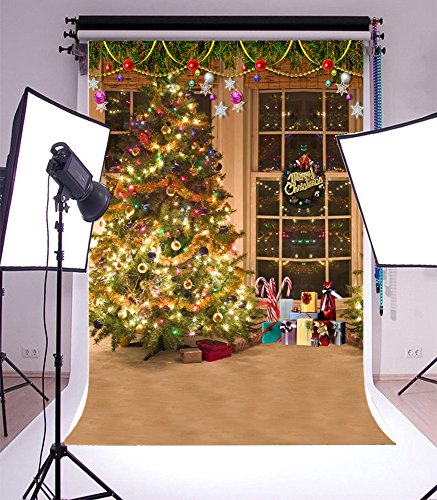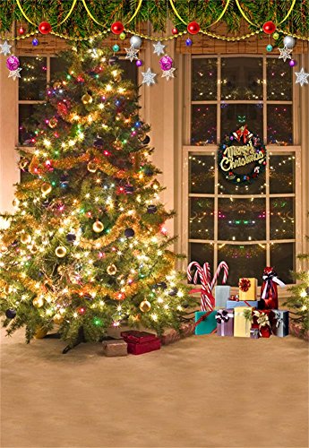 Laeacco Christmas Tree Vinyl Backdrop 3x5ft Merry Christmas Photography Background Swanky Indoor Room Glittering Gift Tree 1x1.5m Photo Studio Props