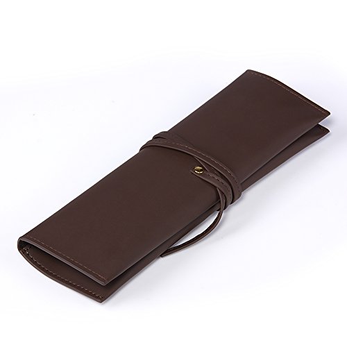 Magic Vosom Bandage Synthetic Leather Pen Bag Brush Holder Makeup Pouch Coffee Color