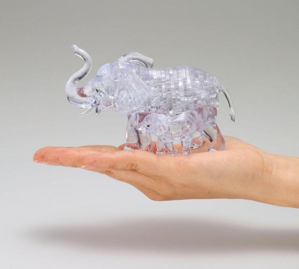 | 象の親子のクリスタルパズルです。親の象は鼻を上げた状態と鼻を下げた状態の顔を選択して組み立てることができます。 |