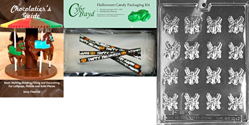Cybrtrayd "Bite Size Spiders" Chocolate Mold with Chocolatier's Bundle, Includes 25 Cello Bags, 25 Happy Halloween Twist Ties and Chocolatier's Guide