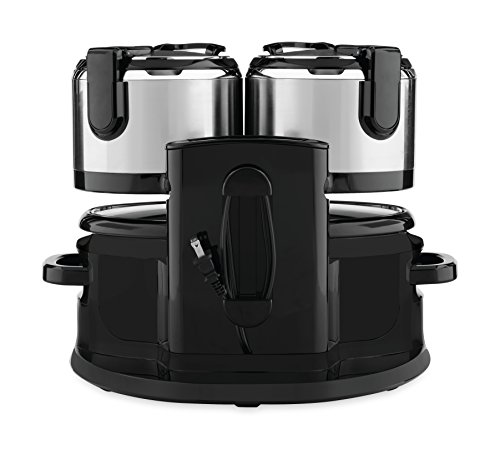 3-level slow cooker is perfect for parties: includes a 3.5-quart slow cooker on base level, and two 1.5-quart slow cookers on the upper level