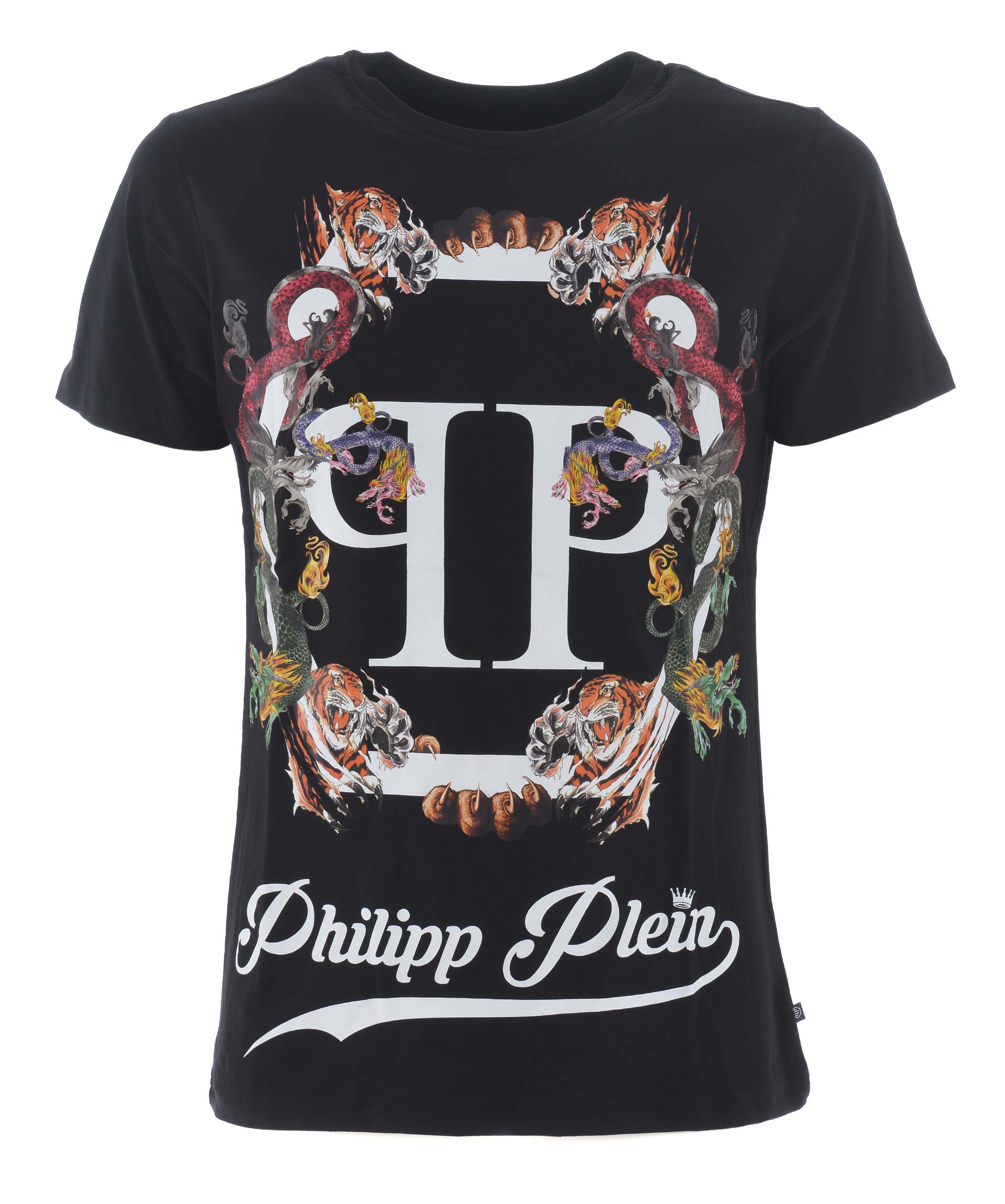 T-shirt Philipp Plein in cotone Nero. Stampa frontale con logo. Girocollo. Manica corta. Misura in foto L 100% cotone