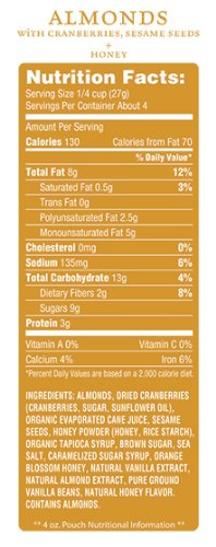 -. Title : Sahale Snacks Almonds with Cranberries, Honey + Sea Salt (1.5 oz bag)