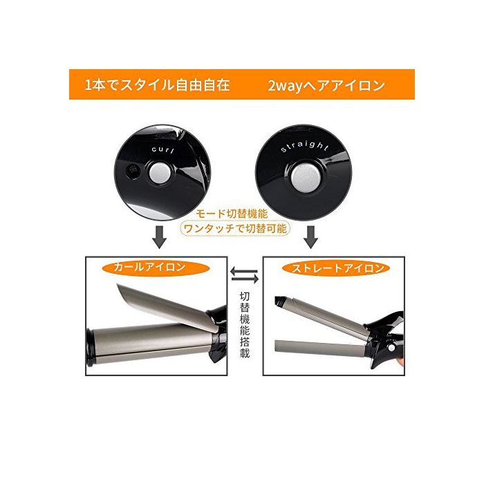 【2WAY스타일】스트레이트도 카루32mm도 즐길 수 있는 2WAY스타일입니다.원터치로 간단하게 바뀌는 때문에,자유롭게 스타일링 하는 것 를 할 수 있습니다.