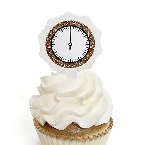 New Year's Eve - Gold - Cupcake Picks with Stickers - New Years Eve Party Cupcake Toppers - 12 Count