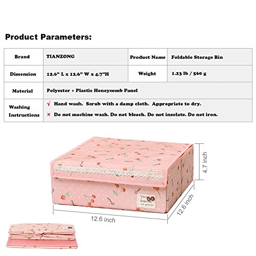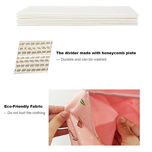 -. Feature : Selected Material: Made from high quality eco-friendly polyester fabric which is moisture-proof and mould-proof. Removable lining panels are made from honeycomb plate which are durable and washable. / Size: Length 12.6 inches x Width 12.6 inches x Height 4.7 inches. / Dustproof: Comes with attached lid that folds over and velcro shut to keep inside items neat at all times. / Various Storage Space: The inside divider can be removable in various size to store and classify your underwear, socks, neck ties, scarves, bras, accessories etc. Easy to find which one you want to wear and keep your living space well organized. / Easy to Assemble: Foldable to be kept when not in use to save space.or store under bed for most convenient use.The 16pcs Collapsible Storage Boxes Dresser Drawer Organizer provides attractive, lightweight solution to many personal storage needs.
