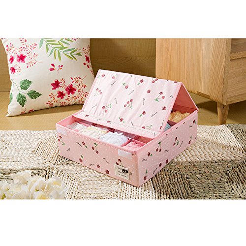 -. Title : Foldable Thick Polyester Storage Bin Drawer Organizer Box for Socks Pants Underwear Bra Scarves with Lid and Removable Divider