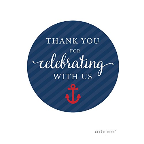 Andaz Press Nautical Baby Shower Collection, Round Circle Labels Stickers, Thank You for Celebrating with Us, 40-pack, For Ocean Sailor Bon Voyage Themed...