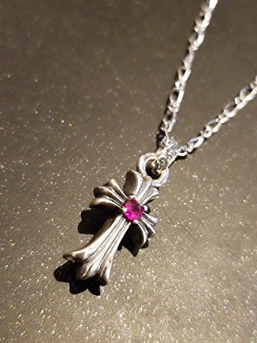 -. Title : ミニチャーム 色々デザイン ダガー クロス 十字架 ストーンつき 925silver シルバー ネックレス チェーンサービス特典 テンプレ クロムハーツ同素材  (3 クロス 一つ石 ピンク人口ルビー)