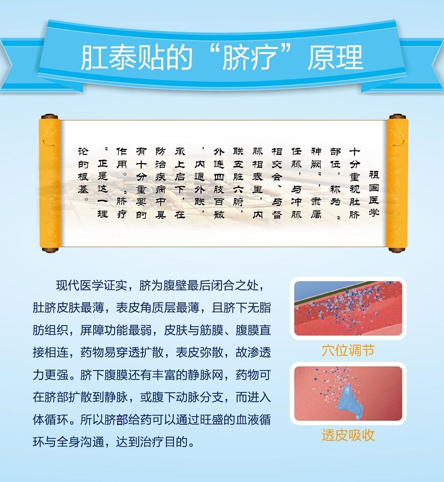 External use, wash the navel (Shenque) surrounding skin, dried, and then the non-woven tape and PVC sheet separation, the tablet aligning navel, solid paste; once a day 1 times.