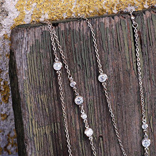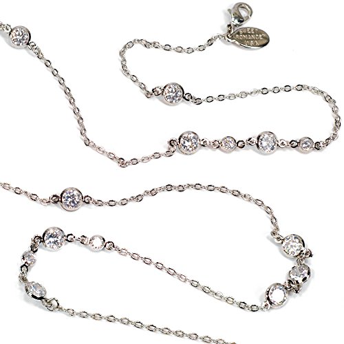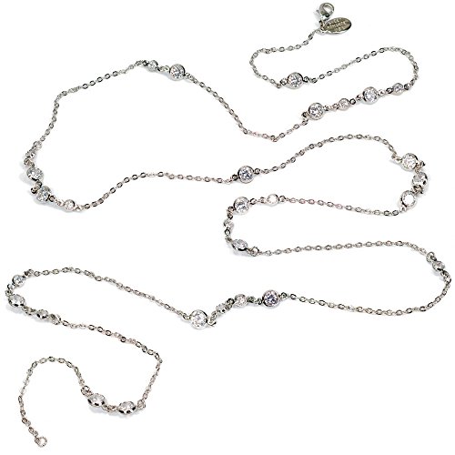 Long, airy, slinky 35" layering necklace. High quality cubic zirconia chaton stones are channel set along a delicate cable chain.