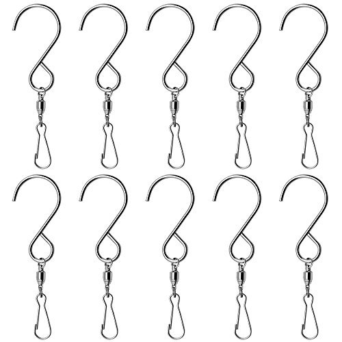 Homgaty 10 Pack Spinning Swivel Hooks Clips Smooth S Hooks for Wind Spinner Wind Chimes Hanging Plants Birdcage Party Ornaments Twister Display Hanger