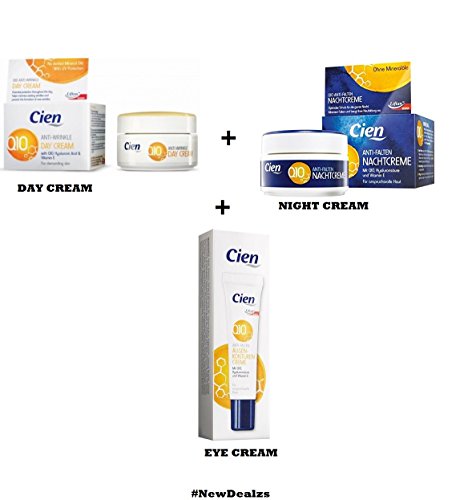 Set of 3 Anti-Wrinkle DAY CREAM - NIGHT CREAM - EYE CREAM - with q10, Hyaluronic Acid & Vitamin E