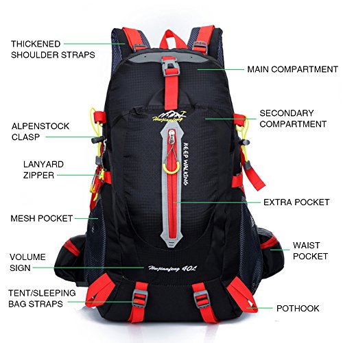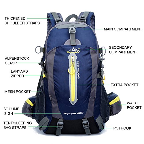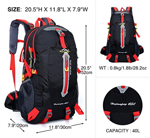 -. Title : 40L Light Camping Trip Backpack, Outdoor Lightweight Hiking Backpack Waterproof Casual Daypack for Climbing Biking Traveling by Longwider Tech