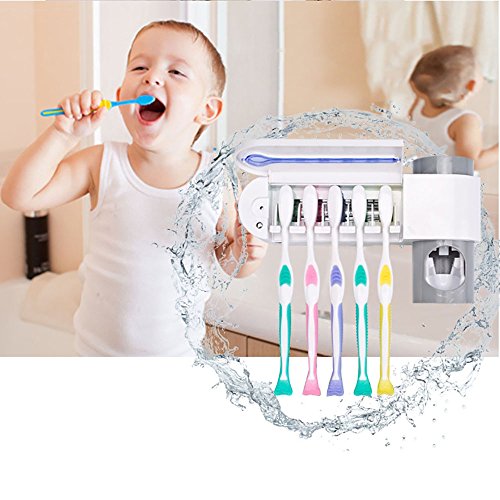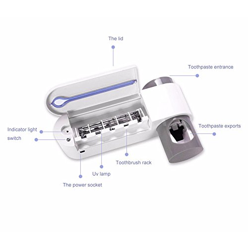 Studio : Mmrm Publisher : Mmrm Product Description Description: Family design can store up to 5 toothbrushes Toothpaste holder and wall mount to save space Be compatible with any kind of toothpaste UV light will auto-off after 4-6 minutesSpecifications: Material: Plastic Main Color: White Brush Holder Size: approx. 23*5.6*6.5 cm Toothpaste Dispenser Size: approx. 13*5.6 cm Weight: 369 gPackage Includes: 1 x Toothbrush Holder SterilizerPlease kindly Note: Items will be repackaged to save your shipping charge to be environmentally friendly. We guaranty the item will be protected well in buble bags, No retail box! 0