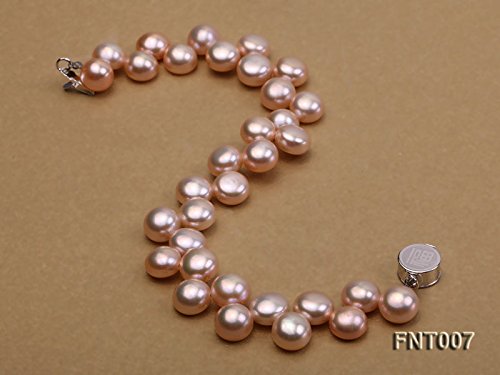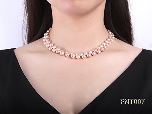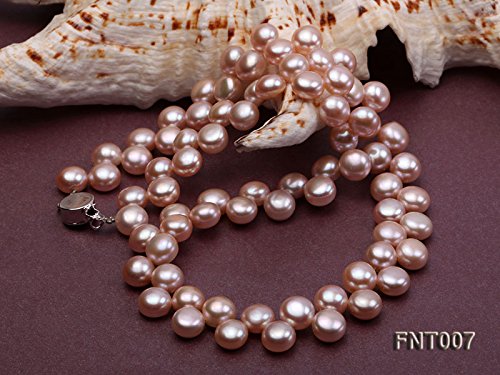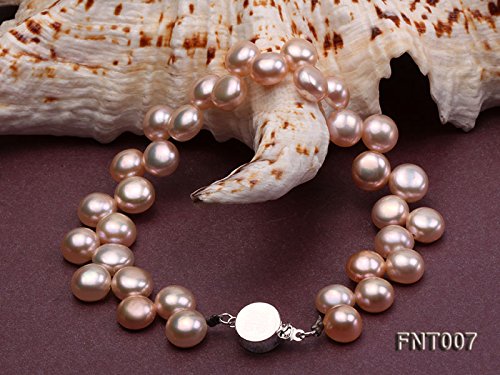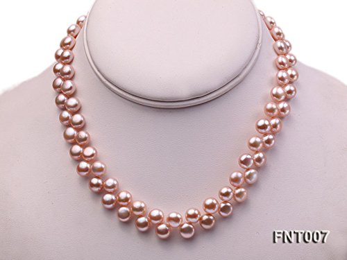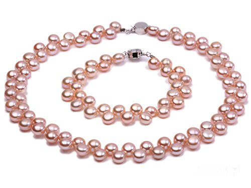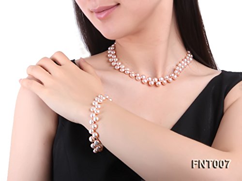 Pretty necklace and bracelet set made of 7-8mm pink flat cultured freshwater pearls.