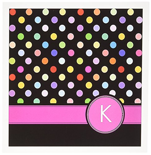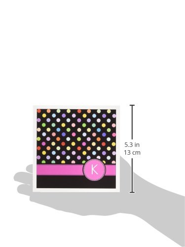 3dRose Greeting Cards, 6 x 6 Inches, Pack of 12, Letter K Monogram on Rainbow Polka Dots Pattern (gc_154308_2)