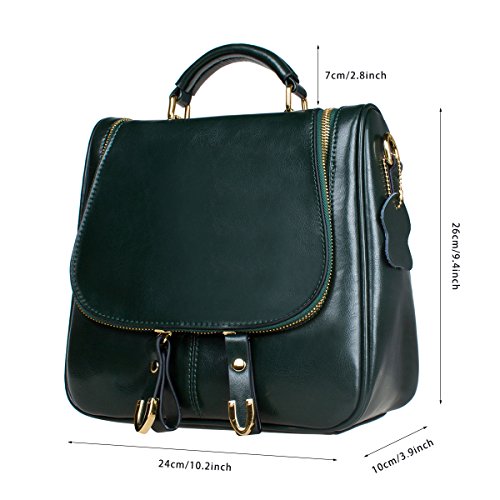 This fashion satchel is made of high quality oil wax split cow leather. It is perfect for ladies to use wherever they roam. The leather backpack features an interior with silky smooth lining, 2 small pouches for your cell phone or pens, 2 zipper pocket for cards, keys or small valuables secure. The leather bag comes with 2 removable shoulder straps, then you could use the bag as crossbody bag, small backpack.