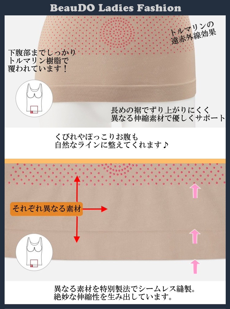🌟【 機 能 性 】フロント・バックに施されたトルマリンが遠赤外線・微弱電流を発生させ新陳代謝や血流を促し、補正しながらこっそり脂肪燃焼! 🔵