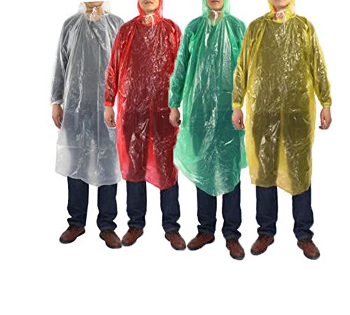 Antrader Emergency One Size Adult Lightweight Disposable Hooded Rain Poncho for Camping Travel Various Colors 5pcs/Set