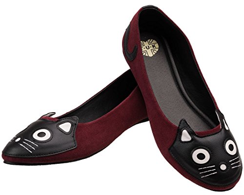 Product DescriptionYou've got to be kitten me! these burgundy suede kitty flats by t.u.k.. original footwear are so cute and comfy. suede upper, rubber sole, padded insole for added comfort.0