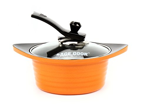 Excelife Ace cook Ceramic 3D coating stock pot, made in Korea. Thick and durable aluminum body is coated by 100% ceramic. Ace cook sauce pot is free of PFOA and PTFE free. Cast heavy gauge aluminum body is heat constructive. No rivet area on cooking surface makes it easy to clean. By using the ceramic to cook, food will be heated more evenly in less time due to superior heat retention.
