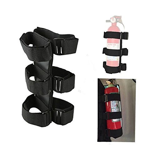 KAMSOL Velcro Stick SUV Jeep Roll Bar Car Fire Extinguisher Holder Bandage with Adjustable Straps (Black)