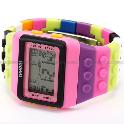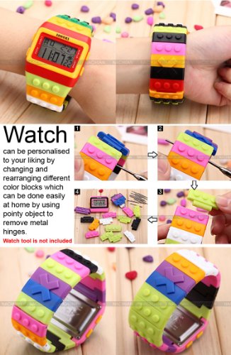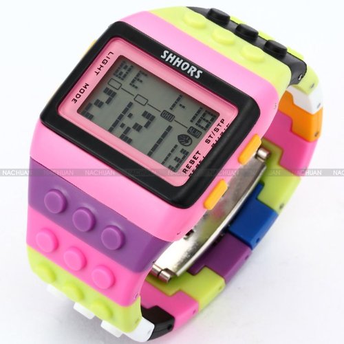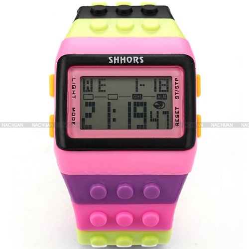-. Title : SHHORS Mens Ladies Blocks Constructor Digital LED Backlight Alarm Sport Wrist Watch LED088