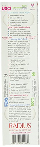 - Feature : You will receive (2) Jack N' Jill Natural and Organic Toothpaste (Banana) + (3) RADIUS Pure Baby Toothbrushes (Assorted Colors) / Bristles are 100% Vegetable-Based Nylon and Dye Free, handle made from BPA Free #5 plastic / The ergonomically smooth, tapered handle is designed to ensure both parents and toddlers grip comfortably and accurately for a better and safer, more controlled brushing experience / Jack N' Jill Toothpaste is Fluoride free, Sugar free, Color free, SLS free, BPA free and contains NO preservatives / Each toothpaste package contains 1.76oz of rich in xylitol and orrganic calendula toothpaste to soothe gums and provide an easy and comfortable brushing
