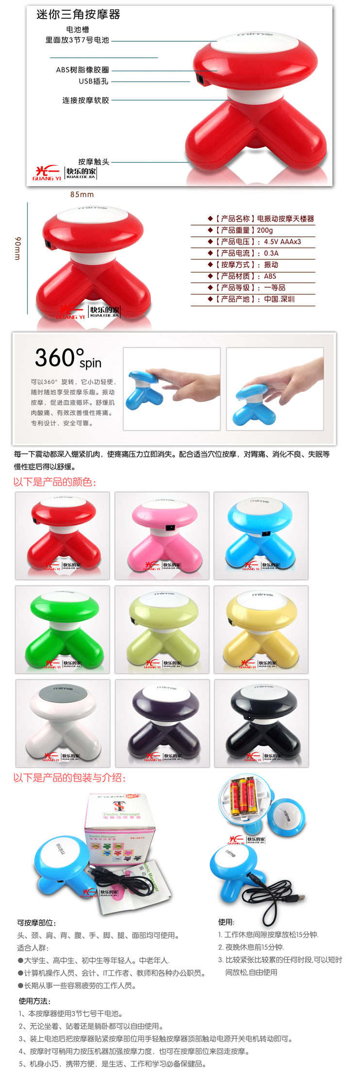 Mini portable mini tripod massager Triangle USB mini massager electric massager send USB cable