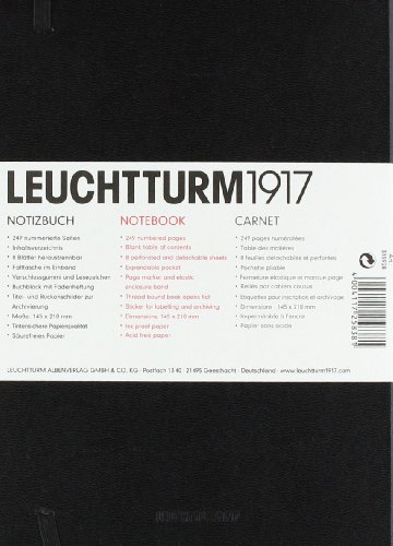 Leuchtturm1917 Medium Size Hardcover A5 Notebook, Squared Pages, Black Color