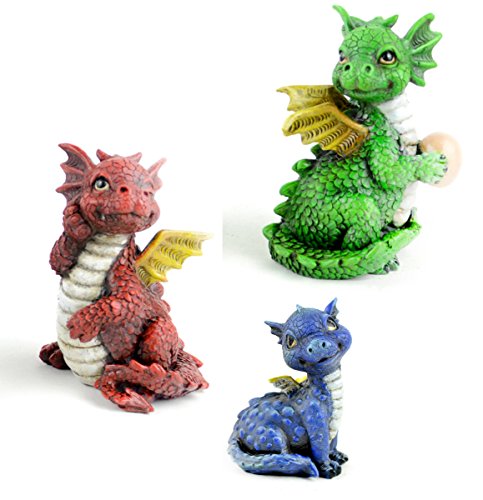 Whimsical Dragon Set - DIY Magical Fairy Garden Kit Includes: 2 Large and 1 Baby Dragon