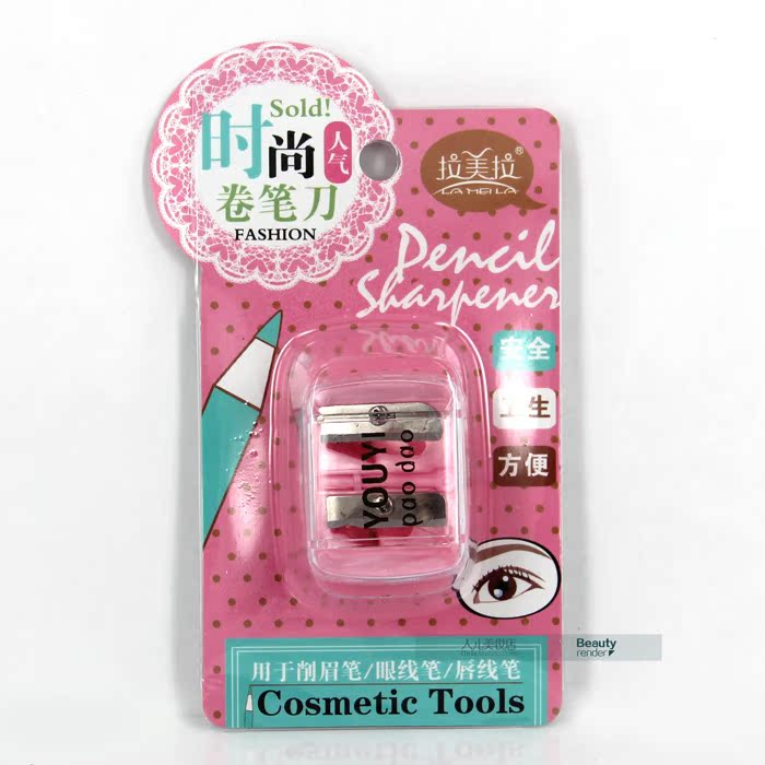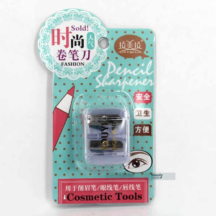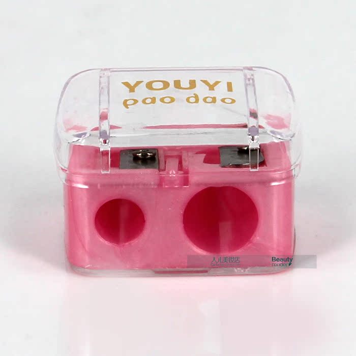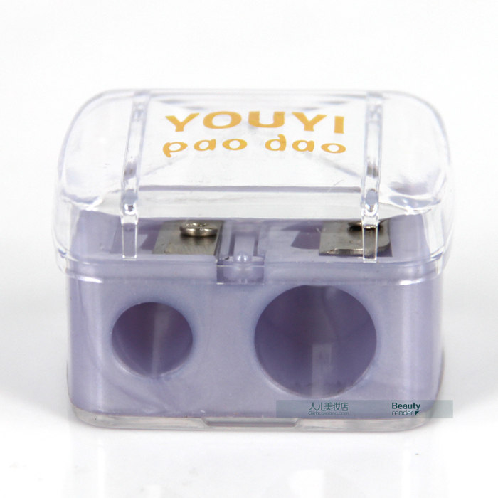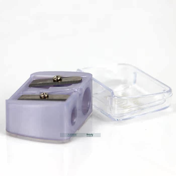This double use cosmetic pencil sharpener is very easy to use, applicableto a makeup eyebrow pencil and pencil, do not use, there is a small transparent cover word top, prevent cut volume when the pen dust flying everywhere. Finished after removing the transparent lid, pour a chip can be. For a make-up of different diameter.