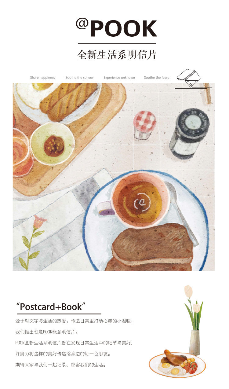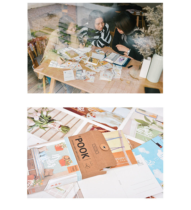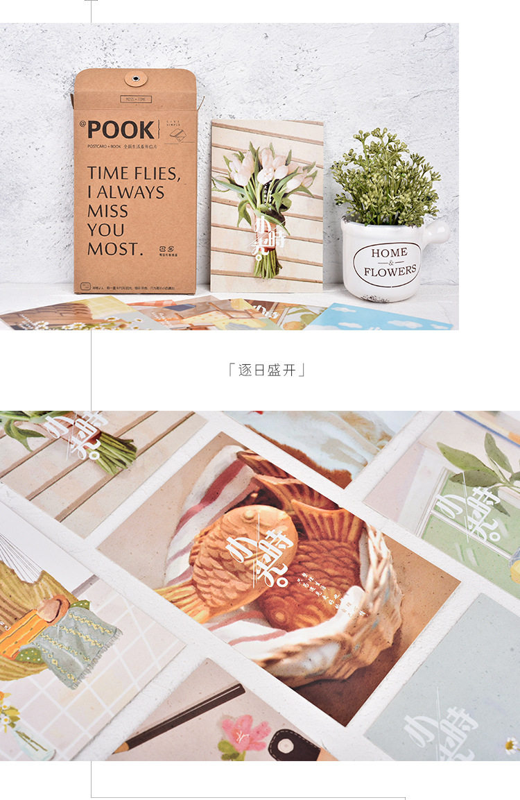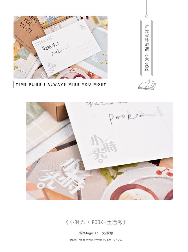 手绘创意日系插画明信片《小时光》diy艺术贺卡生日卡片盒装30张