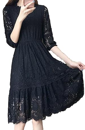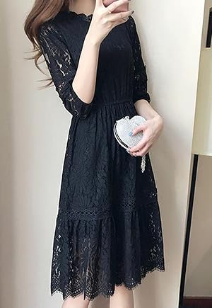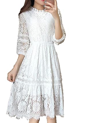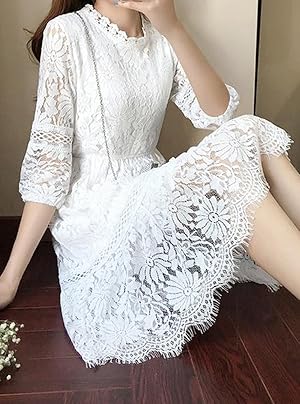 • 柄の透かし編みがエレガントな総レースドレスです。