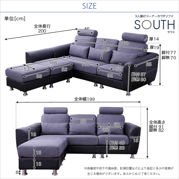 3人掛けコーナーカウチソファ【サウス-South-】