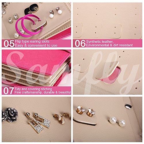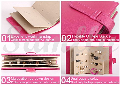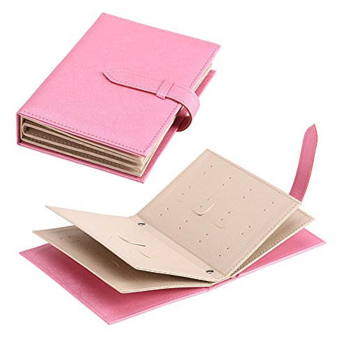 Samfly Earrings Organizer Book Portable Travel Jewelry Holder PU Leather Jewelry Display Box Storage Case (Pink)