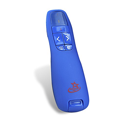 Studio : Red Star Tec Publisher : Red Star Tec Binding : Electronics Product Description Red Star Tec Wireless Powerpoint and Keynote Presentation Remote Clicker (RST PR- 819) with Red Laser Pointer With a working range of up to 50 feet, a CLASS 2 Laser with a maximum human output of 4 Milliwatts, you can deliver your presentation with confidence and the freedom to move around without having to return back to your Computer or Laptop to go to the next slide with this compact and lightweight Powerpoint remote. Best of all, no wires or pairing is required with this Red Star Tec wireless presenter remote and therefore no last minute hiccups. Rather you will have total control of your powerpoint presentation. The Presenter comes with a wireless receiver housed within the presenter itself. So you are less likely to lose your receiver. To get started are you need to do is insert your wireless USB receiver into 1 of your USB ports ensure that the receiver is recognised by your computer and then you are ready to go ( Truly Plug and Play) Every thing is intuitive and works exactly the same way for Macs and PCs. Control functions include: 1.Next slide (Page up) 2.Previous slide (page down) 3.Blank Screen 4.Launch Powerpoint Slide Show(works for PCs) 5.Power Button Use the Presenter for either PPT, power point for Macs or Keynote and the PR-819 wireless clicker won't let you down Included is a powerful Red laser pointer that allows you to highlight key points and areas in your slide(s) easily. You can also use the laser pointer as a stand alone pointer if desired. when it comes to delivering talks presentation, all these features make the RST PR-819 PPT Clicker the perfect remote for speakers, students,teachers and Lecturers. *********** Please note you DO need 2 AAA batteries (not supplied)************ 0 |